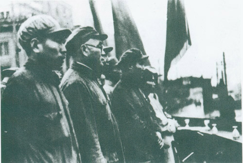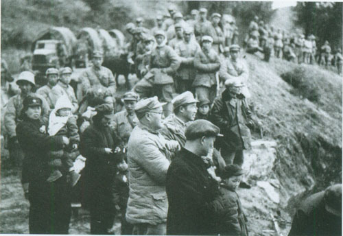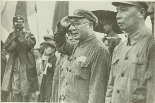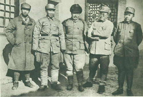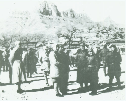21.刘伯承1937.2陪同国民党中央考察团考察红军驻地。左一为刘伯承。