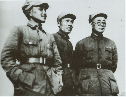 47.刘伯承1940年底在八路军一二九师师长任上,与政治委员邓小平、参谋长李达合影。