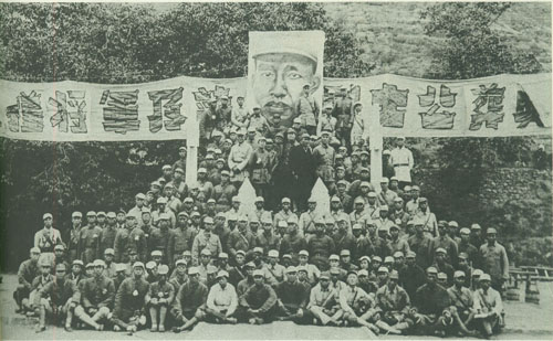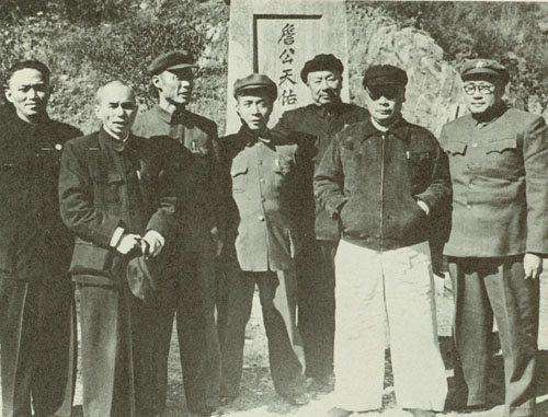 54.刘伯承1942.lO.10与十八集团军司令部全体工作人员在左权将军墓前合影