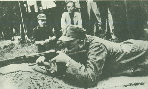 65.刘伯承1946.6在晋冀鲁豫军区召开练兵会议期间,为指战员做射击示范。