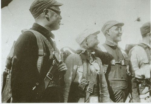 62.刘伯承1945.8.20任晋冀鲁豫军区司令员,25日与政治委员邓小平等从延安返回太行山前线,在山西黎城长凝机场合影。陈毅(站左二)、刘伯承(站左四)、邓小平(站左三)、聂荣臻(坐左四)、李富春(坐右一)、杨尚昆(站左一)、滕代远(站右三)、陈赓(站右一)。站右二为萧劲光。
