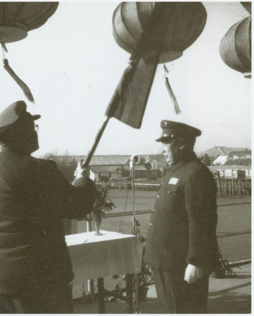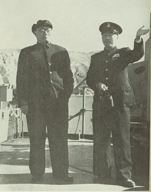156.刘伯承1953年在大连视察海军舰艇。右为刘华清。