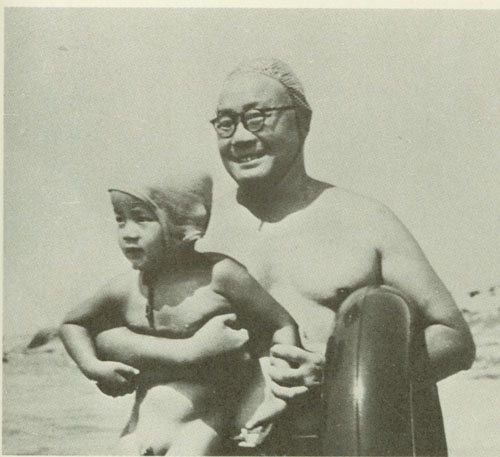 165.刘伯承1954年夏在北戴河带着儿子游泳