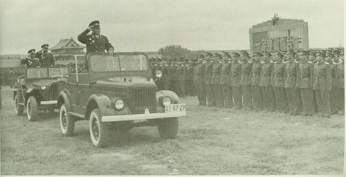 157.刘伯承1954.4陪同来南京军事学院视察的朱德总司令,检阅军事学院学员队伍。