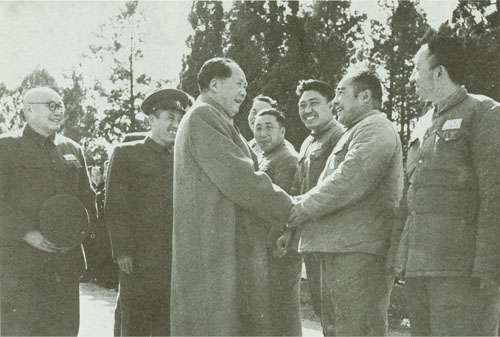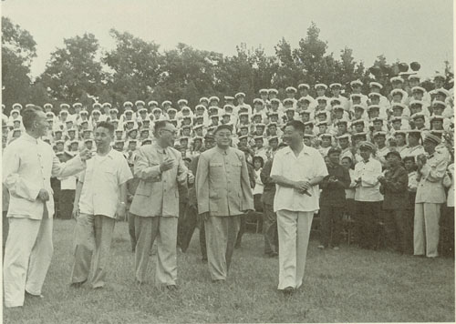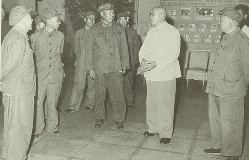 174.刘伯承1956年陪同毛泽东主席视察南京军事学院,右起:钟期光、谭震林、罗瑞卿、陈伯均、刘伯承、毛泽东、李银桥。