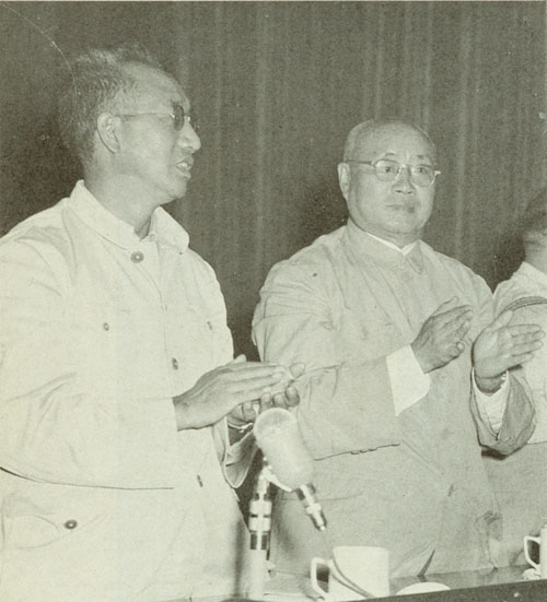 180.刘伯承1958.5和徐向前在军委扩大会议上。这次会议错误地批判所谓“教条主义”,刘伯承被迫抱病到会检讨,受到了不公正的对待。