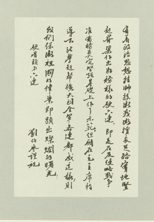 222.刘伯承1964年为“硬骨头六连”的题词手迹。