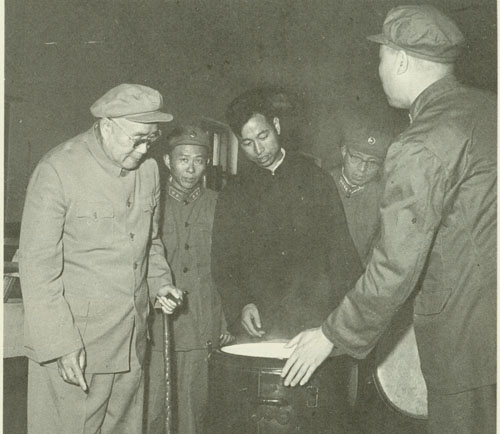225.刘伯承1964年在哈尔滨军事工程学院,察看伙房的卫生情况。