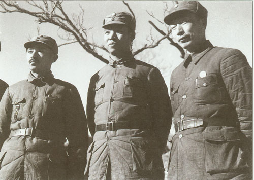 2.彭真1938.3作为常驻晋察冀边区中共中央北方局代表与军区负责人等合影。左起:关向应、彭真、聂荣臻。
