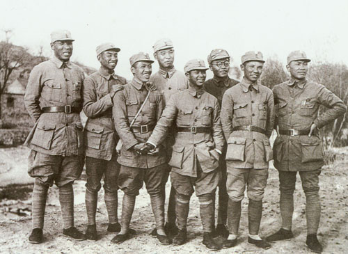 10.彭真1940年在晋察冀抗日根据地合影。左起:聂鹤亭、萧克、陈伯钧、彭真、舒同、黄敬、朱良才、陈漫远。