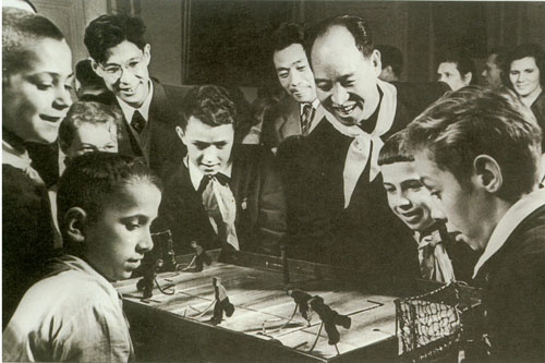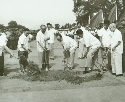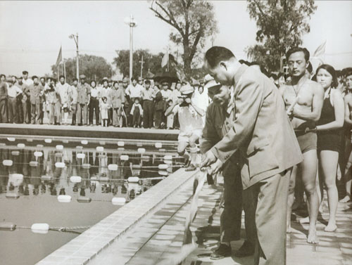 64.彭真1951.6为北京市新建的什刹海人民游泳场开幕剪彩。