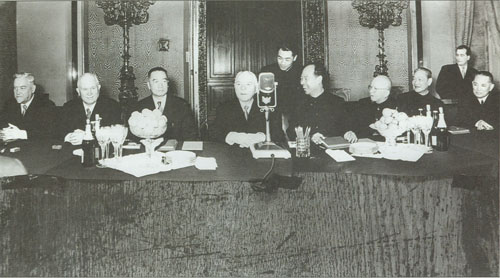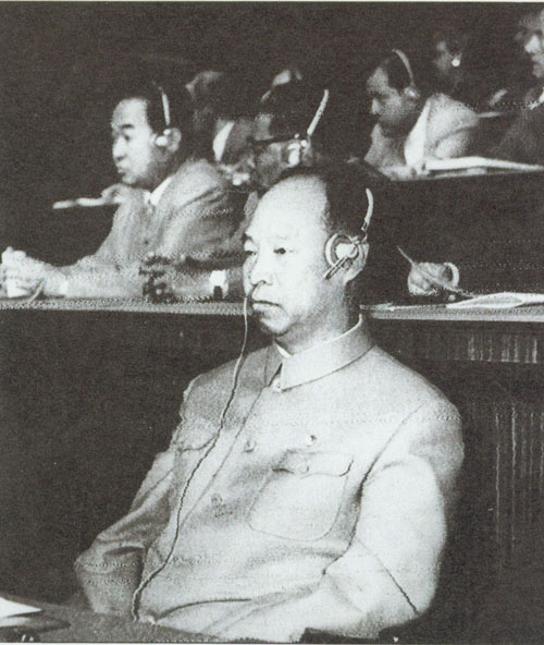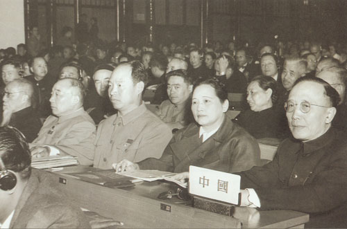 73.彭真1952.10在亚洲及太平洋区域和平会议上。前排右起:郭沫若、宋庆龄、彭真、马寅初、陈叔通。