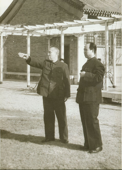 77.彭真1953.4与董必武在中南海怀仁堂后草坪上。