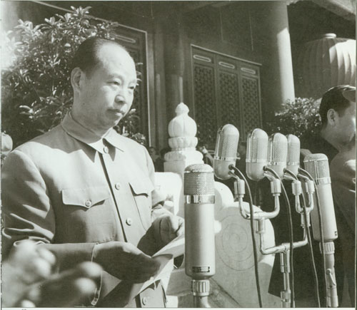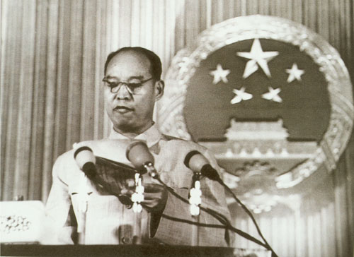 86.彭真1955.9在中华人民共和国主席授予元帅军衔及勋章典礼上,宣读毛泽东主席授予元帅军衔的命令。