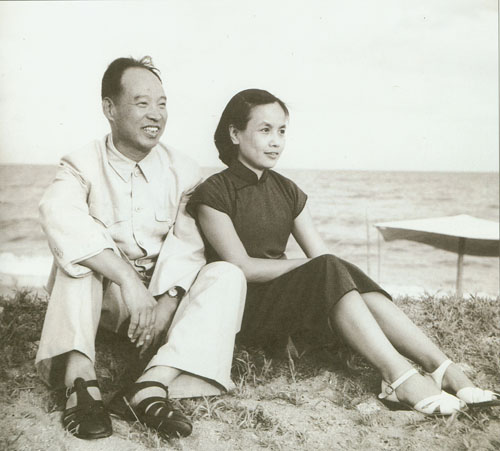 85.彭真1955.8与夫人张洁清在北戴河海滨。