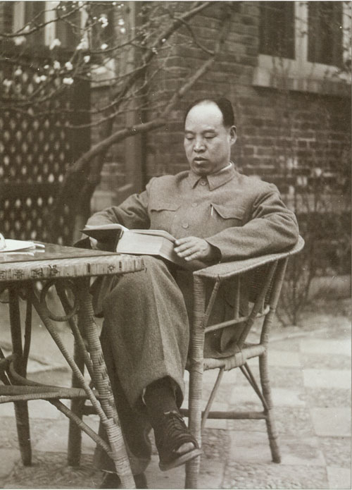 75.彭真1952年在北京住所庭院读书。