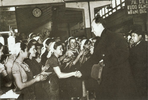 74.彭真1952年与店员、工人代表座谈,勉励他们积极参加反行贿、反偷税漏税、反盗窃国家财产、反偷工减料、反盗窃国家经济情报的“五反”运动。