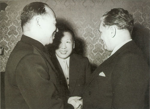 69.彭真1952.4在中央人民政府委员会第十四次会议期间同周恩来、郭沫若在一起。