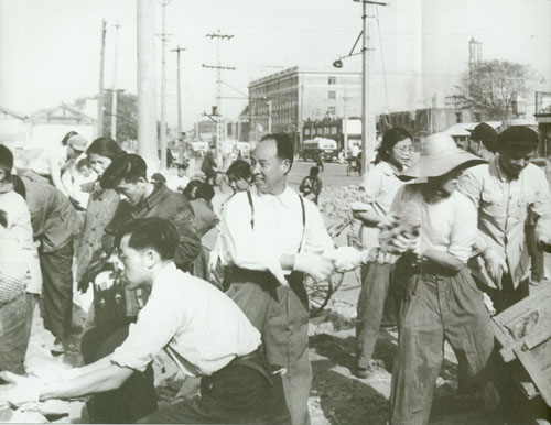 9.彭真1939年夏与聂荣臻同来自延安的青年工作队队员合影。