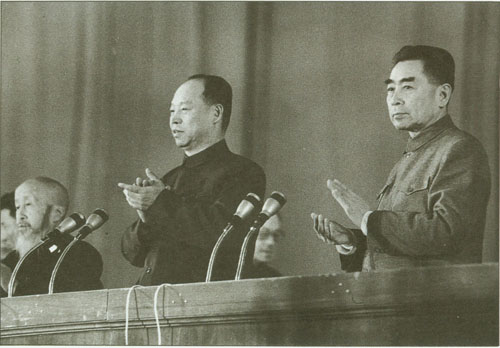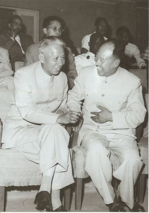 59.彭真1951.2在北京市第三届各界人民代表会议第一次会议上当选北京市市长,和副市长张友渔(右)、吴晗