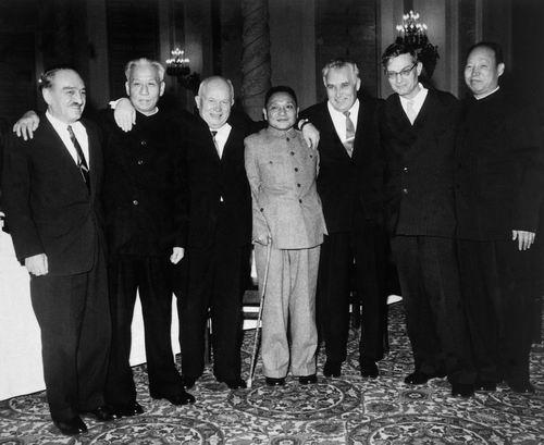 82.彭真1954.9.在第一届全国人民代表大会第一次会议上当选为第一届全国人民代表大会常务委员会副委员长。前排右四为彭真。