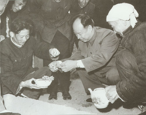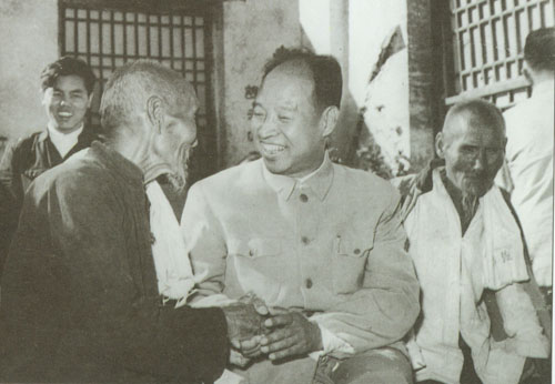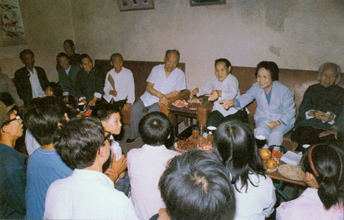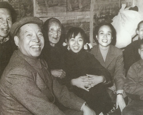 302.彭真1986.5和夫人张洁清回到山西侯马市垤上村,与家乡亲属们亲切交谈。
