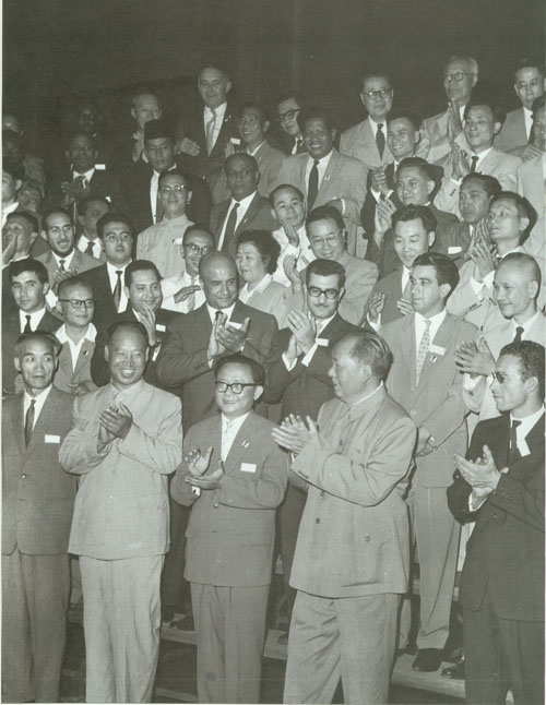 55.彭真1952.10在亚洲及太平洋区域和平会议上。前排右起:郭沫若、宋庆龄、彭真、马寅初、陈叔通。