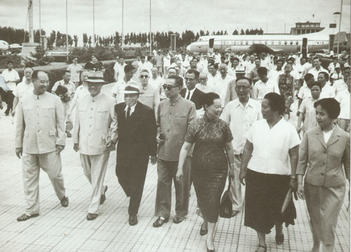 24.彭真1949.3.25在中共中央及所属机关和中国人民解放军总部迁到北平后,和叶剑英随同毛泽东等在西郊机场阅兵。