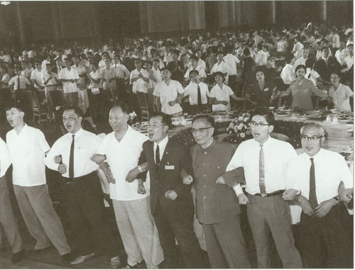 278.彭真1985.4.10在六届全国人大三次会议闭幕式主席台上。