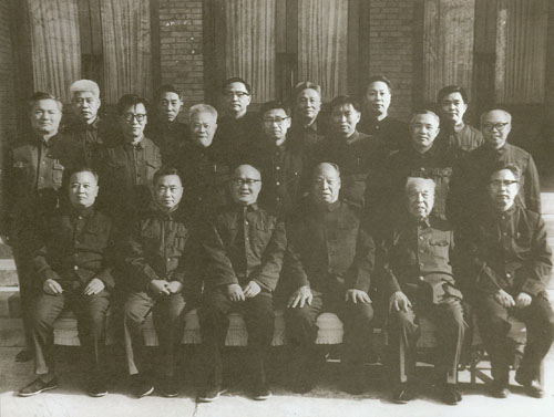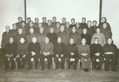 291.彭真1985.12同参加全国《民法通则(草案)》座谈会的同志合影。前排左起:张友渔、王汉斌、刘复之、彭冲、彭真、陈丕显、郑天翔、武新宇、高克林。