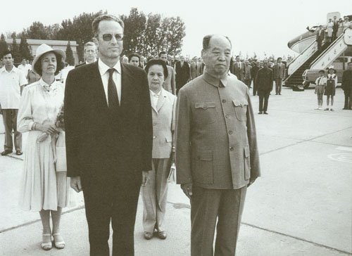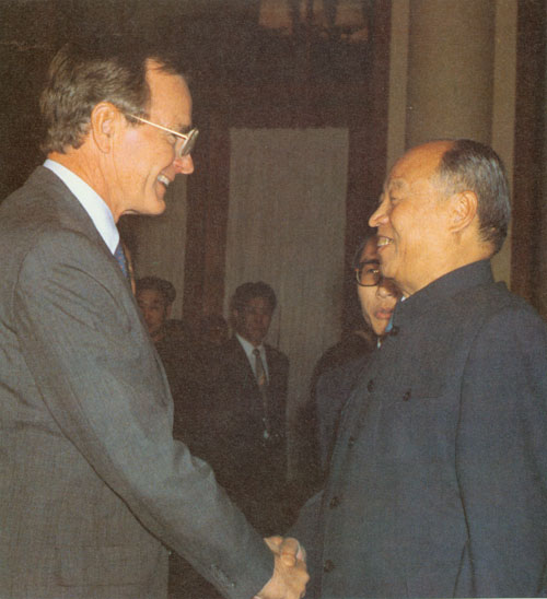 290.彭真1985.10在北京会见美国副总统乔治·布什。