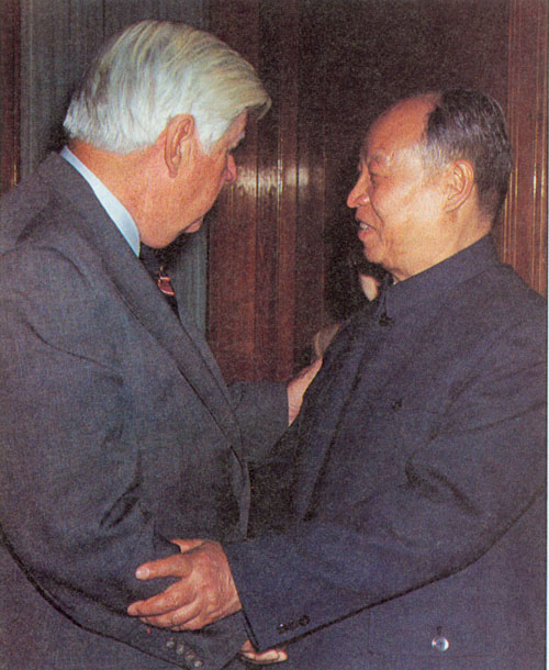 284.彭真1985.7.在北京会见澳大利亚联邦议会代表团团长、参议院议长道格拉斯·麦克莱兰。