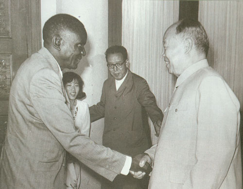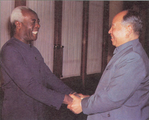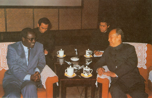 283.彭真1985.6在北京会见赞比亚国民议会议长鲁赛逊·纳布利亚托。