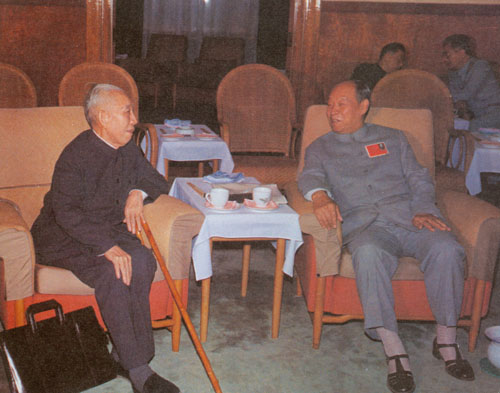 288.彭真1985.9出席中国共产党全国代表会议,与邓小平在休息室里。