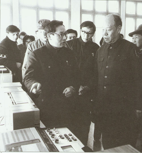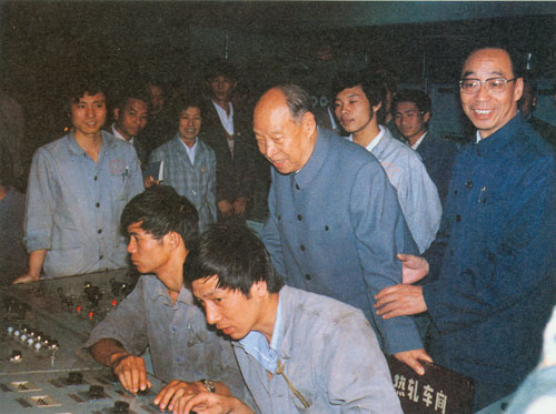 308.彭真1986.10在武汉钢铁公司观看工人操作。