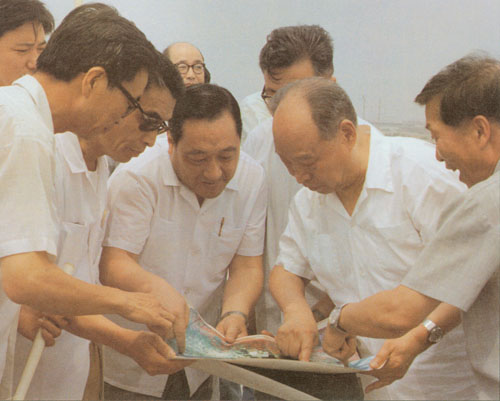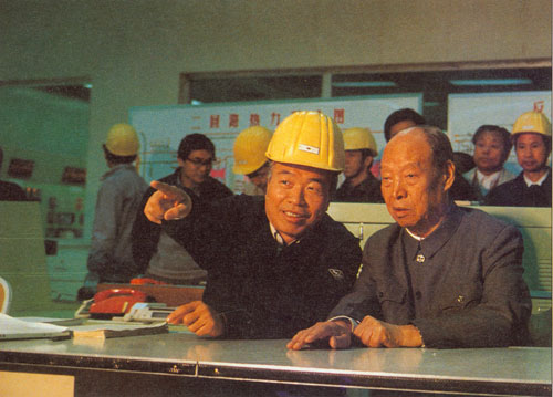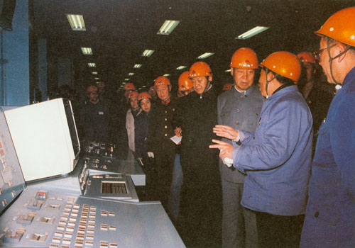 362.彭真1991.3在浙江参观兴建中的秦山核电站。
