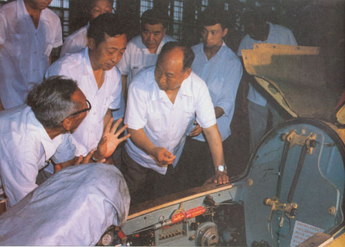 349.彭真1989.3在长沙视察南方动力机械公司。