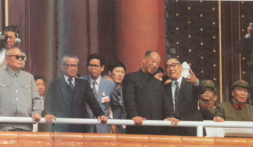 271.彭真1984.i0.1同李先念等在天安门城楼上。