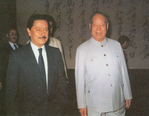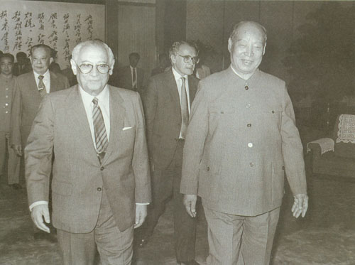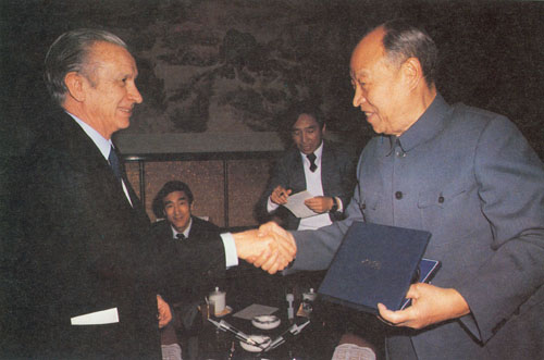 306.彭真1986.6在北京会见秘鲁部长会议主席路易斯·阿尔瓦·卡斯特罗。