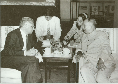 275.彭真1985.3同六届全国人大常委会委员、香港《大公报》社长费彝民交谈。