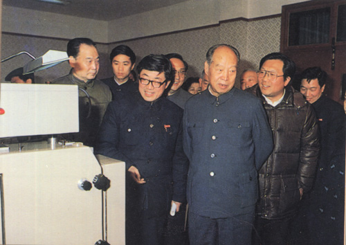 348.彭真1989.3在长沙国防科技大学参观。