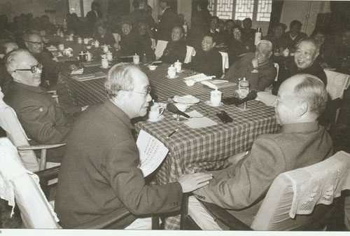 301.彭真1986.4在六届全国人大四次会议北京代表团联组会上,同代表一起讨论中华人民共和国民法通则草案。