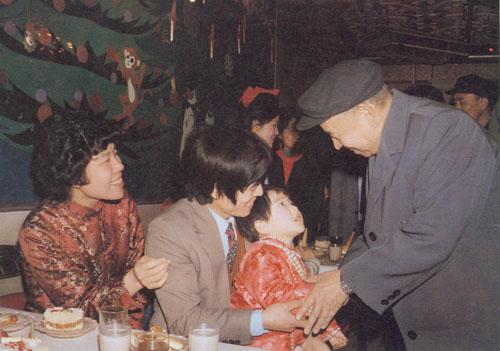 299.彭真1986.2在天津一家餐厅遇见一对年轻夫妇正为幼女庆祝生日,他祝孩子生日愉快。