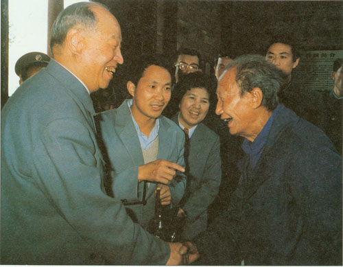 322.彭真1987.4在江西同宁冈县老赤卫队员谢梅香交谈。