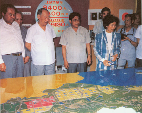 330.彭真1987.5月在深圳观看经济特区的发展规划模型。