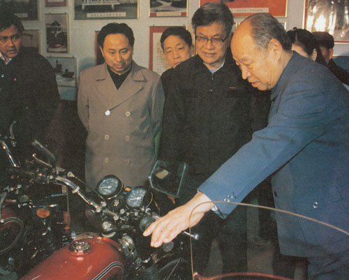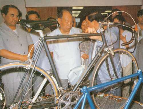 331.彭真1987.5在深圳经济特区视察中外合资企业中华自行车厂。