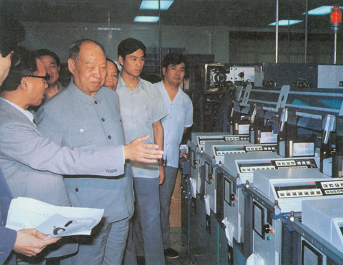 332.彭真1987.5在珠海经济特区考察中外合资企业美达磁碟厂。