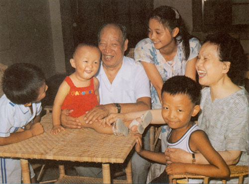 337.彭真1987.8与夫人张洁清同与孙儿、外孙女在一起。