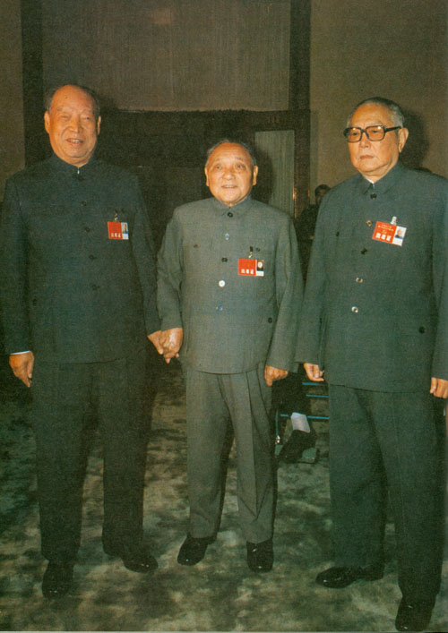 340.彭真1987.10在中国共产党第十三次全国代表大会期间同邓小平、李先念在一起。