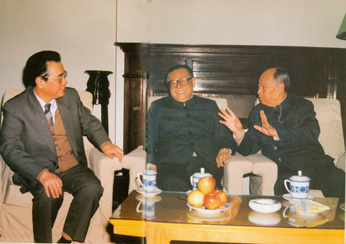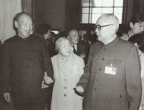 319.彭真1987.4同乌兰夫、邓颖超在一起。